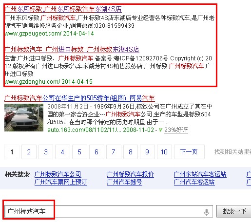 贈送關鍵詞“廣州標致4S店”排名百度第四位