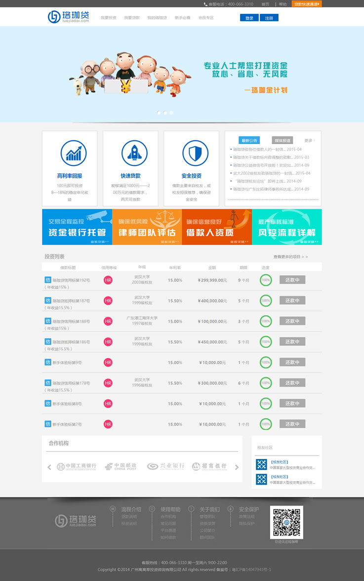 簡(jiǎn)介:珞珈貸是由30余名武漢大學(xué)校友發(fā)起的校友社交金融平臺(tái),運(yùn)營法律主體為廣州離離草投資咨詢有限公司,公司注冊(cè)資本金500萬元人民幣。我們立志將珞珈貸打造成為全球武漢大學(xué)校友的核心投融資平臺(tái),滿足校友的投融資需求,為校友提供最為安全、權(quán)威、高效的投融資服務(wù)。珞珈貸同時(shí)面向全體社會(huì)投資者,提供安全高效的投資渠道。我們專注于為有資金需求和投資需求的校友搭建一個(gè)公平、透明、穩(wěn)定、高效的校友互助金融平臺(tái)。