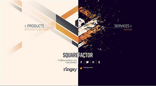 再看下一個頁面設(shè)計,采用了兩種顏色拼湊的背景圖片,給人以強(qiáng)大的視覺沖擊,其大部分是空白處,用戶很快就能找到重點,頁面簡單大方。