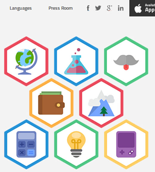 第一,做好扁平化設(shè)計(jì),只需秉承一個(gè)理念,那就是簡(jiǎn)單。設(shè)計(jì)者應(yīng)舍得放棄,把以前用來(lái)將元素裝飾成3D效果的紋理、透視、陰影等的統(tǒng)統(tǒng)拋掉,用最簡(jiǎn)單的表達(dá)方式展示最簡(jiǎn)單的元素,結(jié)合抽象同樣可以把內(nèi)容展示得富有吸引力。扁平化的效果尤其在移動(dòng)設(shè)備上更受到歡迎,如果網(wǎng)站的受眾用戶集中的移動(dòng)用戶上,那么選擇扁平化設(shè)計(jì)一定不會(huì)錯(cuò),它帶給用戶的體驗(yàn)更加愉悅。如下一個(gè)頁(yè)面則是用典型的符號(hào)表達(dá)的內(nèi)容元素。