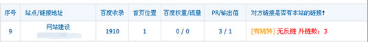 2、權衡網(wǎng)站的權重。尋找友鏈最好是自己主動去發(fā)現(xiàn),方法可以通過自己網(wǎng)站的關鍵詞來搜索,一般能夠排在前面的網(wǎng)站權重是相對較高的,如果發(fā)現(xiàn)目標網(wǎng)站權重比自己網(wǎng)站要高得多,還可考察目標網(wǎng)站上的友鏈站點來選擇,總之,選擇友鏈的最低標準都要是與自身權重相當?shù)木W(wǎng)站。考察一個網(wǎng)站除了看它的權重以外,網(wǎng)站的收錄,索引,排名趨勢,鏈接數(shù)量等都是參考因素。例如:一個網(wǎng)站的大致情況如下,所要找的網(wǎng)站友鏈數(shù)則最好不超過30個,權重相當?shù)那疤嵯戮鸵词珍浟渴欠褚彩?000左右,其次是看它主關鍵詞的排名是否靠前,網(wǎng)站內(nèi)容更新頻率以及大體趨勢是否朝好的方向變化。對于新站來說也可將其作為一個判斷依據(jù),千萬不可好高騖遠,要想找到權重更高的網(wǎng)站來做友鏈,唯一一個方法就是努力提高自身網(wǎng)站權重。